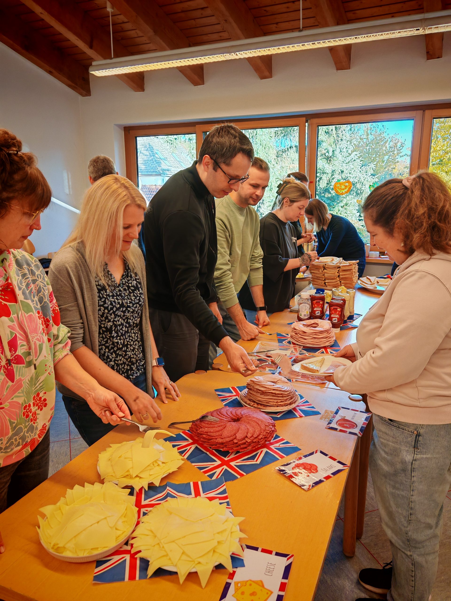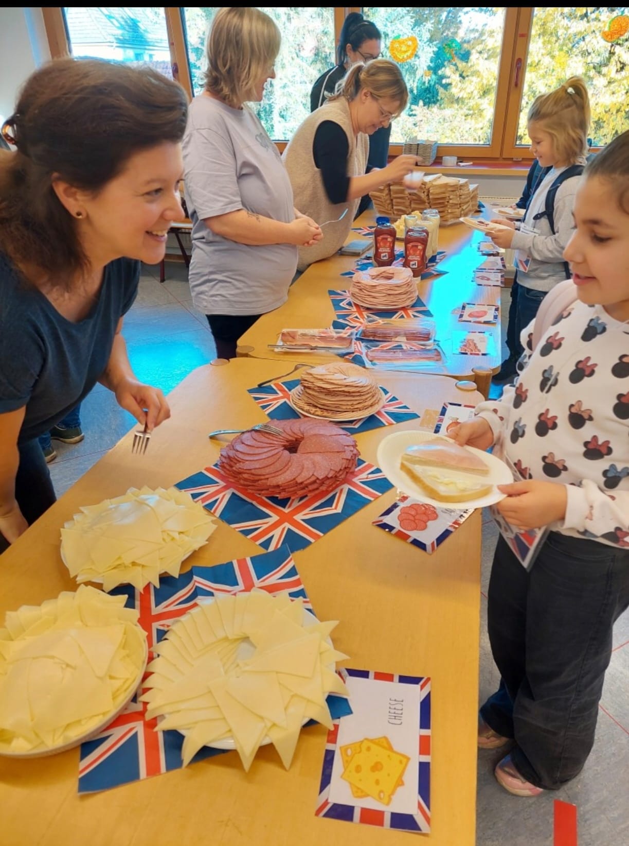 Auch für das leibliche Wohl war bestens gesorgt: 25 engagierte Elternhelferinnen und -helfer bereiteten an der „Sandwichbar“ leckere belegte Sandwiches zu, die die Kinder – ganz stilecht – auf Englisch bestellten.