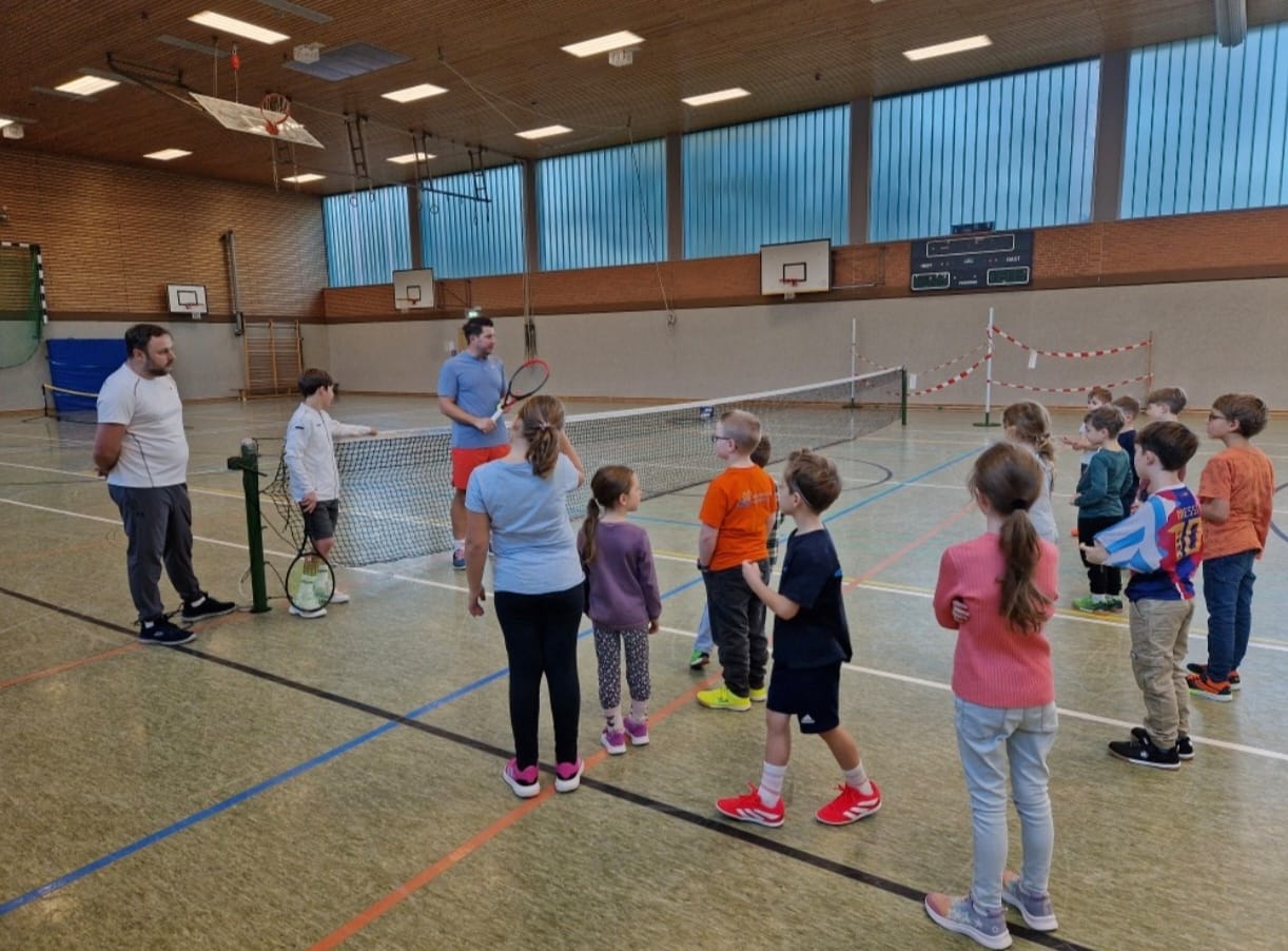 Beim Hockey, Hobbyhorsing und Tennis konnten sie drei beliebte Sportarten aus Großbritannien ausprobieren.  Wir danken an dieser Stelle dem Tennisverein Aerzen für ihren Einsatz! Ein besonderes Highlight war außerdem der Besuch von Mrs. Hudson, die den Kindern als „native Speaker“ spannende englische Geschichten vorlas. Ein weiteres besonderes Angebot entstand in Kooperation mit der Schule im Hummetal. Der Englischkurs der 8. Klasse unter der Leitung von Frau Schubert hatte ein abwechslungsreiches Spieleangebot vorbereitet. Dabei trainierten die Schülerinnen und Schüler der Oberschule nicht nur ihr eigenes Englisch, sondern motivierten auch die Grundschulkinder, mutig zu sprechen und auszuprobieren – eine tolle Begegnung zwischen den beiden Schulen!